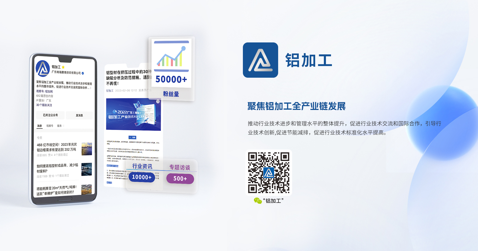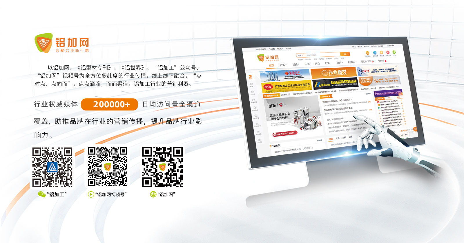 鋁加網(wǎng)(www.albiz.cn)是聞名鋁加工行業(yè)的垂直門戶網(wǎng)站,云聚鋁業(yè)新生態(tài),構(gòu)建鋁業(yè)新場(chǎng)景,以albiz.cn 網(wǎng)站為核心,以移動(dòng)云端、鋁加工微信、鋁加網(wǎng)視頻號(hào)、《鋁型材專刊》和《鋁世界》雜志為載體,成為了鋁加工行業(yè)資訊和精準(zhǔn)傳播的首選傳媒。鋁加網(wǎng),采集和發(fā)布全行業(yè)信息資訊,提供線上展覽、在線直播、短視頻、品牌策劃、品牌運(yùn)營、品牌傳播等全方位的專業(yè)服務(wù)。